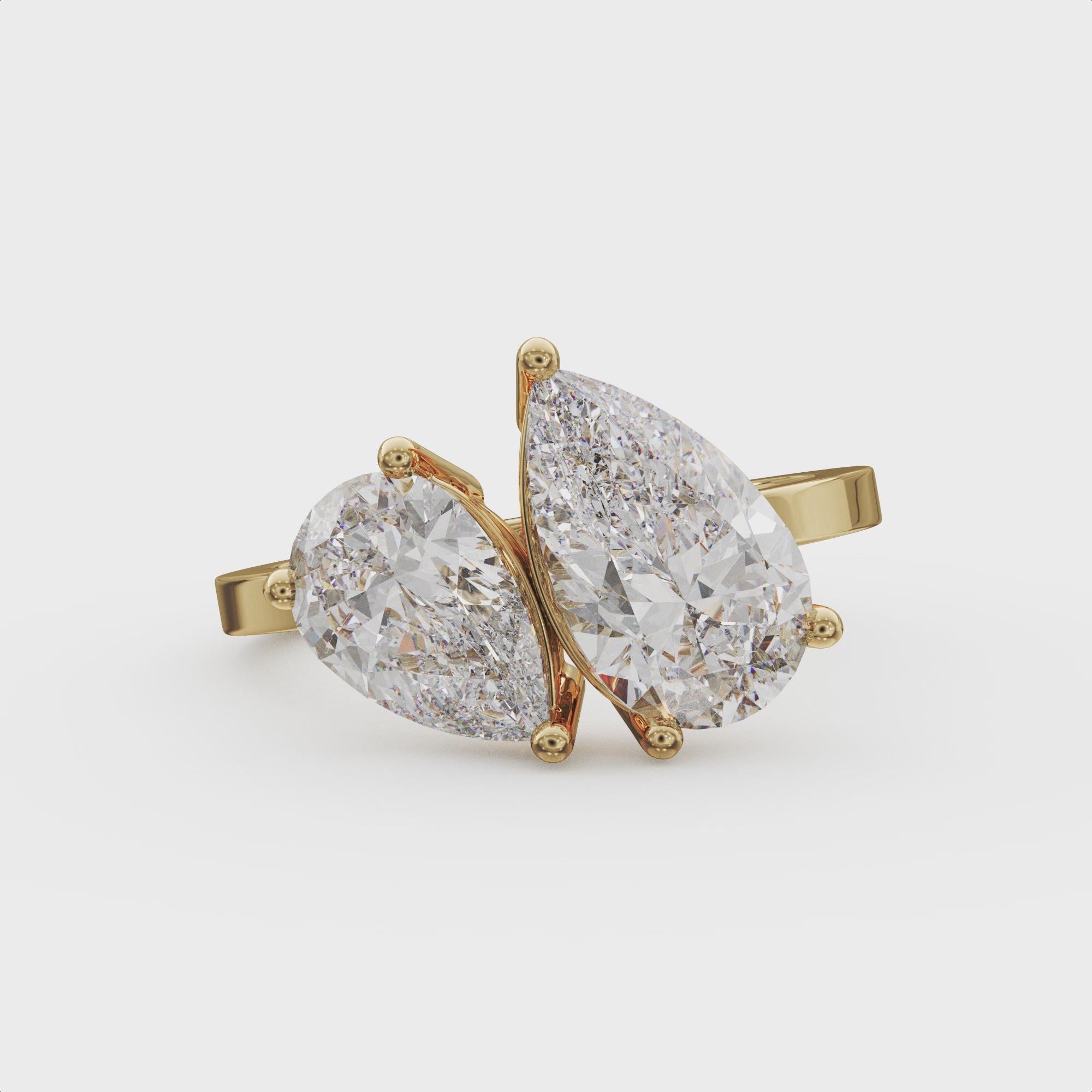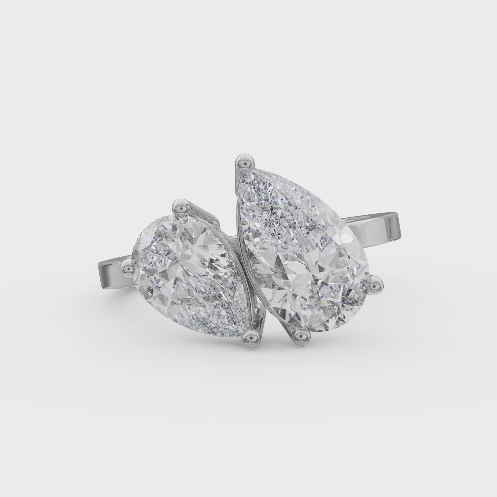 The Natasia Misha ring is a poetic expression of love and harmony. Inspired by the classic moi et toi design, it features two pear shaped diamonds that meet in perfect balance, each distinct yet beautifully united.