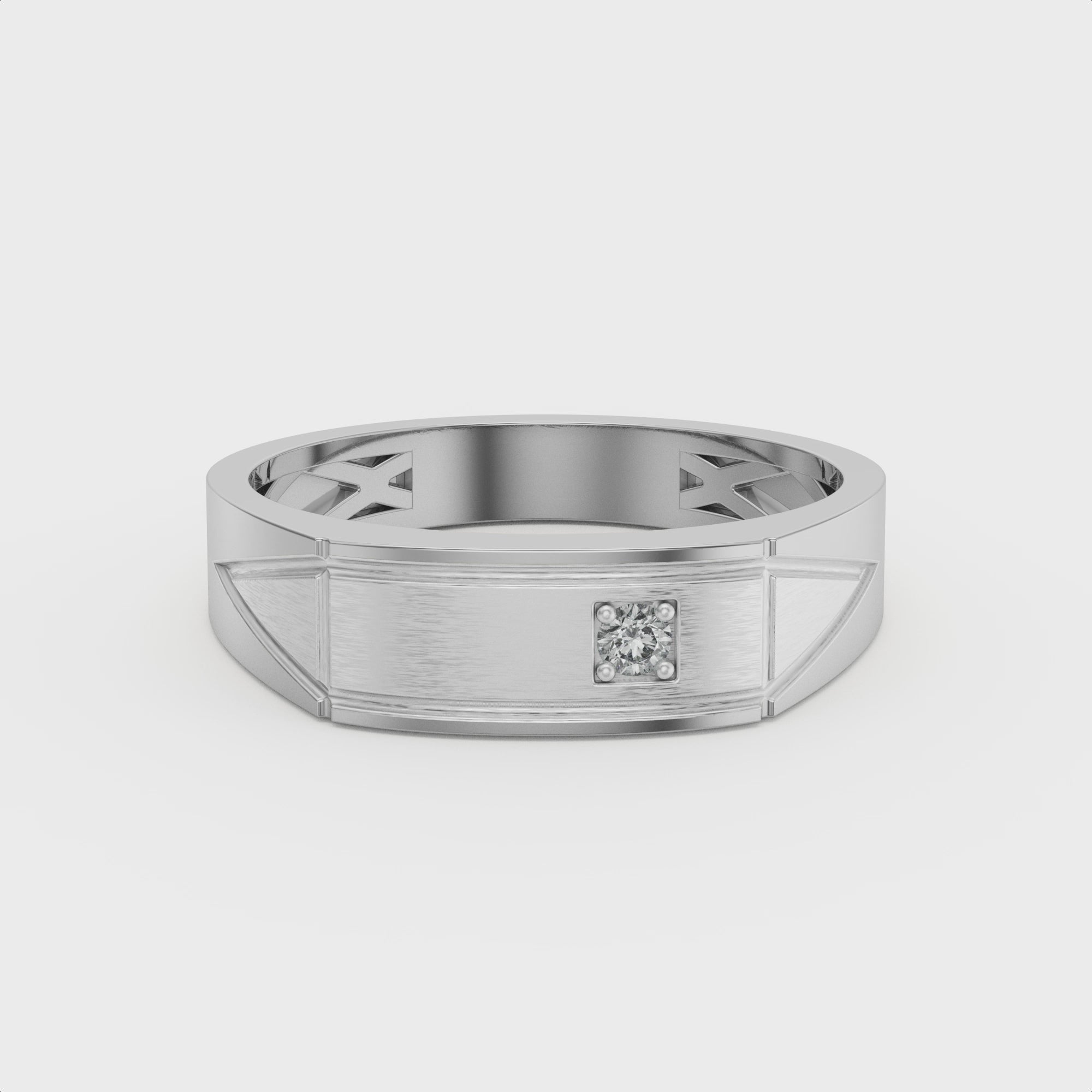 The Kilian Nicolas Ring captures the essence of refined masculinity and modern style. Designed by Maison Solitaire, this men’s engagement ring features a brushed finish that adds subtle texture and sophistication, perfectly balanced by a single round diamond that reflects quiet confidence.