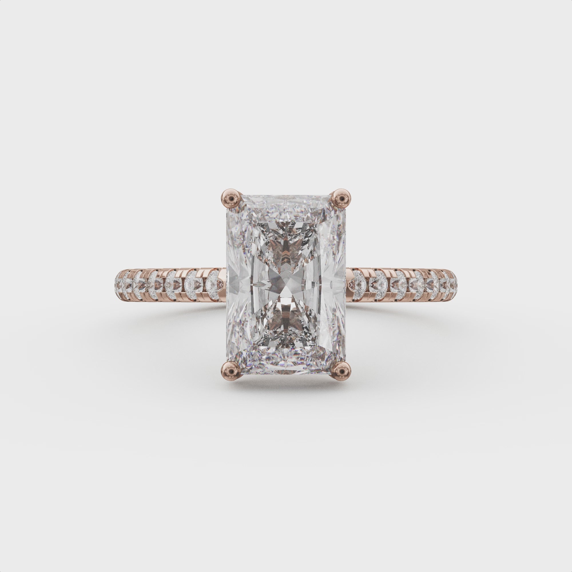 The Natasia Anne ring is a portrait of strength, clarity, and lasting devotion. The radiant cut diamond commands attention with its clean lines and exceptional brilliance, creating a perfect balance between modern design and timeless elegance.
